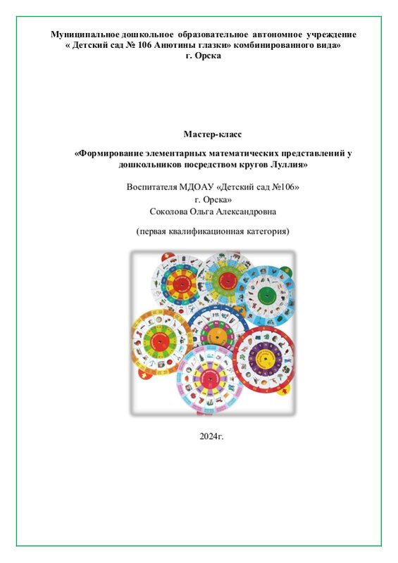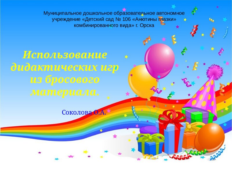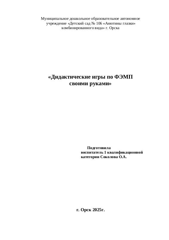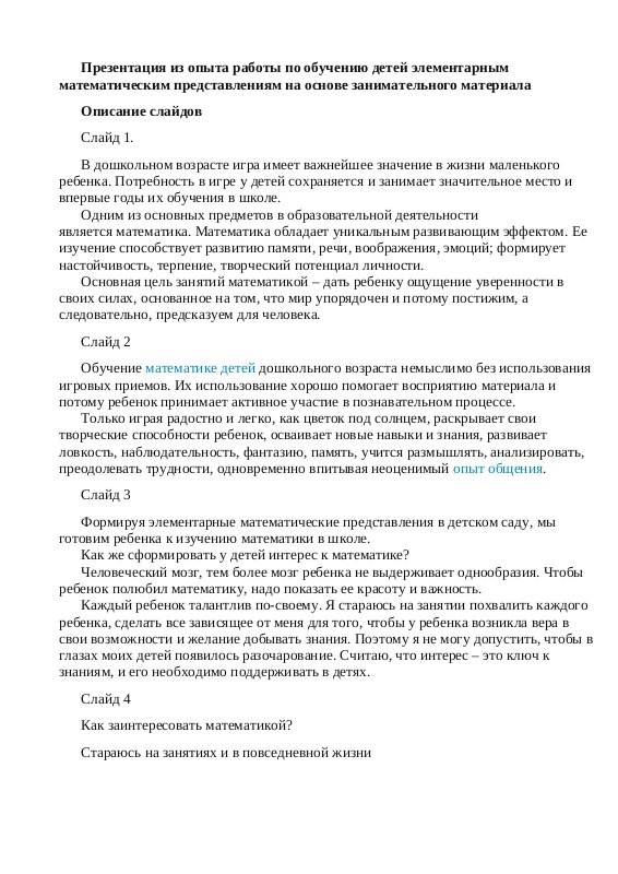 ДОКЛАД Презентация из опыта работы по обучению детей элементарным математическим представлениям на основе занимательного материала