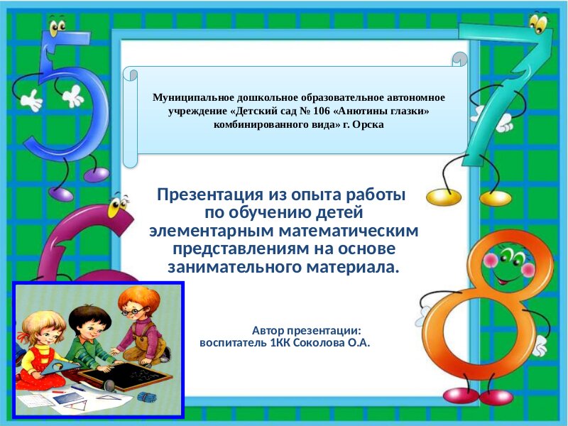 по обучению детей элементарным математическим представлениям на основе занимательного материала.